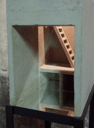 Escalier, 2016. Moulage avec le mortier ciment, miroir, fer, 18 x 25 x 147 cm