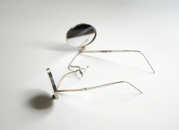 Rétrovision 2001. 20 x 22 x 5 cm, laiton argenté, miroirs, technique soudage, système d’articulation